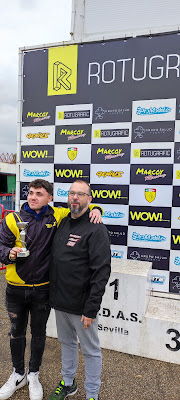 Luego en las finales absolutas comentar que la de formula 1 salió en seco con 11 pilotos .hubo un percance de radio por parte del piloto portugués Jose Candeias que se metió en contra de recta y provoco un brutal accidente con Joan Fábregas (piloto candidato al podio) y Jesús Sánchez que iba en el fin de semana de menos a mas .Jesús se encontró en recta medio coche de Joan pues este se partió literalmente en dos en la recta. Ya en los últimos minutos comenzó a llover y con el primer puesto asegurado con un gran ritmo por Ricardo Sánchez , la segunda plaza se la disputaron Alberto García y nuestro piloto sevillano Enrique Bellón (KIKE) que hizo una gran remontada para llegar a Alberto. Finalmente y no con facilidad el segundo puesto fue para Alberto que parece que ha cogido el punto a su chasis y tercero nuestro KIKE que aunque empiece regular siempre esta ahí rondando los primeros puestos.